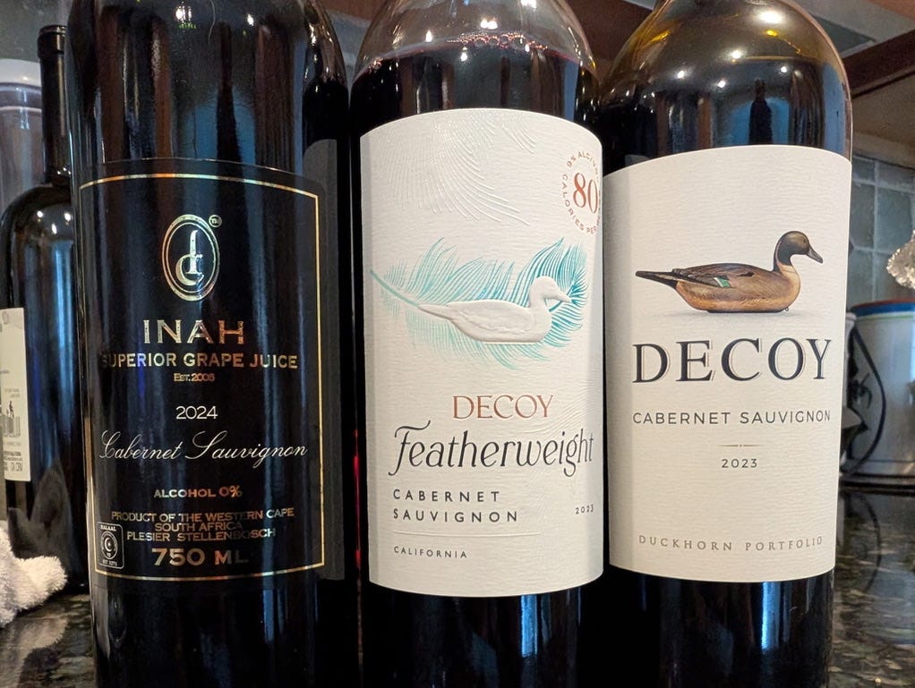 It was delicious. It tasted like Cabernet Sauvignon, with the black currant / cassis notes we all love. It’s off-dry, as the natural sugars were never fermented into alcohol. But it wasn’t cloying like certain California concoctions meant to appeal to the American sweet tooth.4 I tried it alongside two Cabernet Sauvignons from the Duckhorn portfolio, Decoy 2023 and the new Decoy Featherweight 2023, a reduced-alcohol cabernet clocking in at 9% abv and 80 calories per glass. The Inah was $20, and the two Decoys were priced in the mid-$20 range, so roughly compatible.