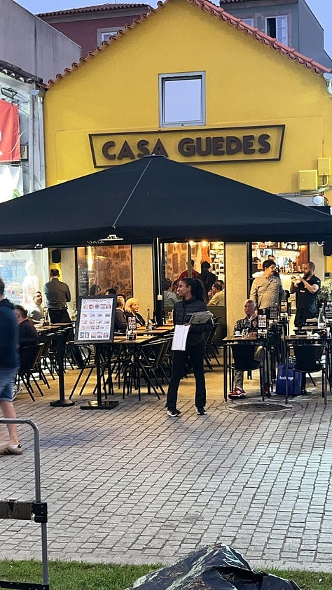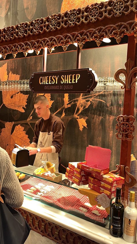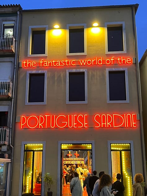 Last Friday was my fourth visit, my first since 2015. The Av. de Diogo Leite was streaming with tourists — Americans on holiday, Brits reconnecting with their country’s historical role in port wine, Germans and Eastern Europeans on a three-day weekend. Several hundred sipped port-based cocktails at a buzzy al fresco bar on the plaza of the Sandeman cellars. Buskers belted ballads through portable boombox speakers. Restaurant greeters waved menus at passersby. Tourists thronged into an old row house with neon lights proclaiming “the fantastic world of the PORTUGUESE SARDINE,” walls festooned with tins of fish and a selfie station where visitors can pose on Neptune’s throne. Next door stood a similar temple to bacalao, the salt cod that fueled Portuguese exploration and colonization, with paeans to cod fritters and a sign proclaiming “Cheesy Sheep.” Perhaps the tourism industry here isn’t too polished, yet.